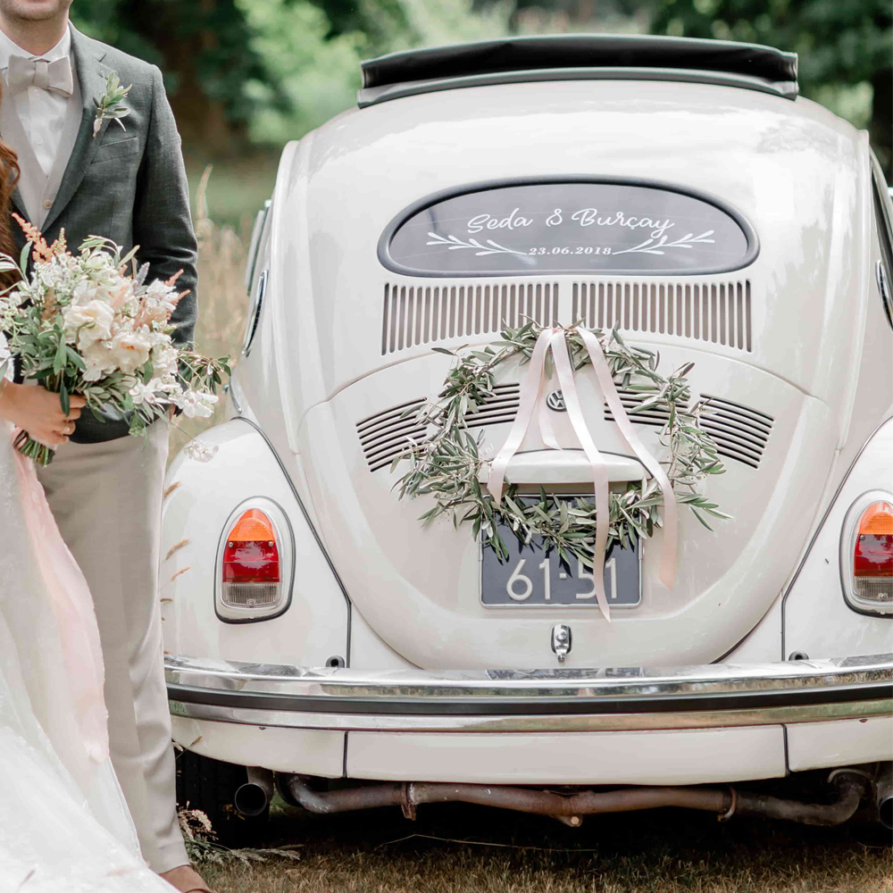 Drive off into forever with our custom Just Married vinyl car decals – made to match your love story.