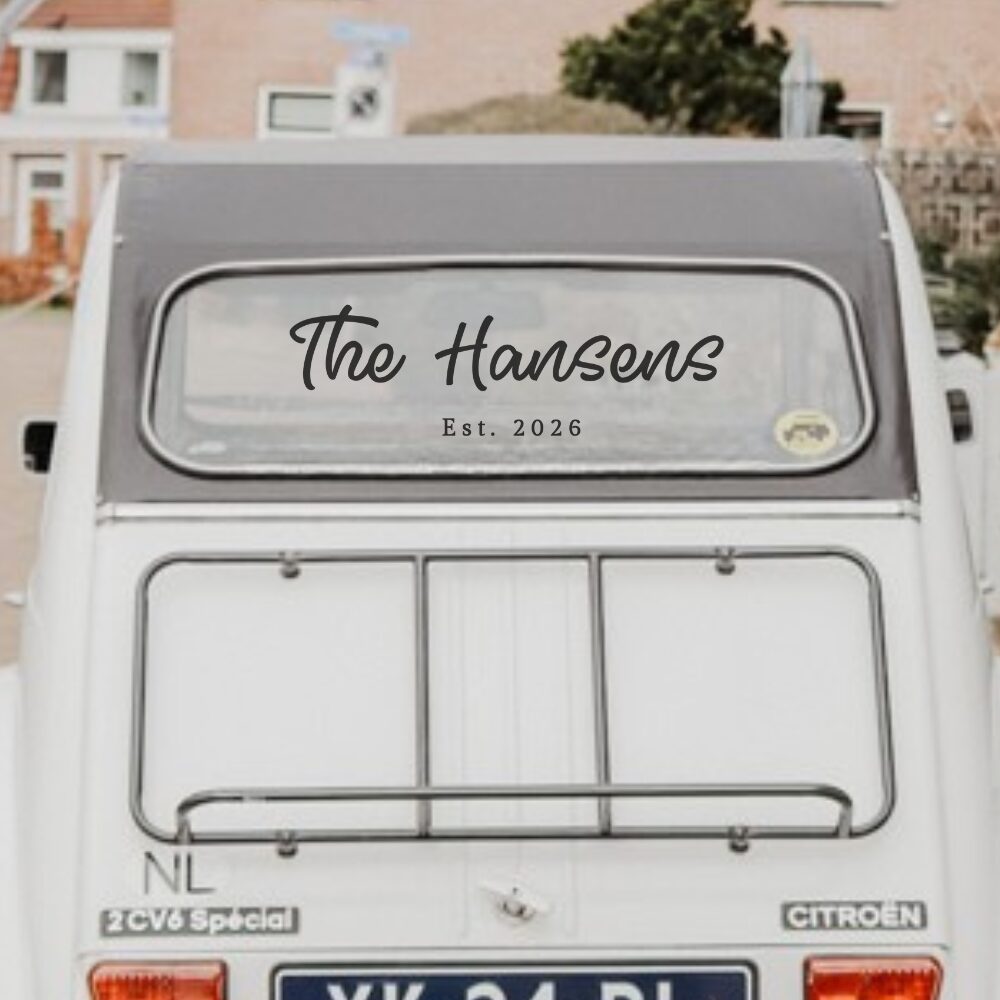 • 1 Wedding Car Window Decal featuring Established Surname Wedding Car Decal design + personalized surname & year
