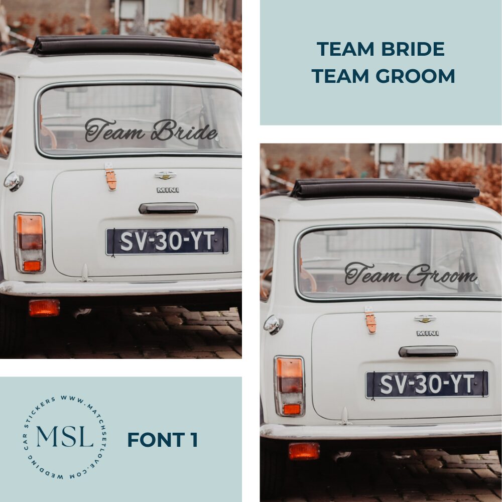 • 1 x Team Bride | Team Groom Wedding Party Car Decal in chosen font (1–3)