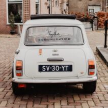 • 1 Wedding Car Window Decal featuring the Tulip Bloom floral design + personalised names & date